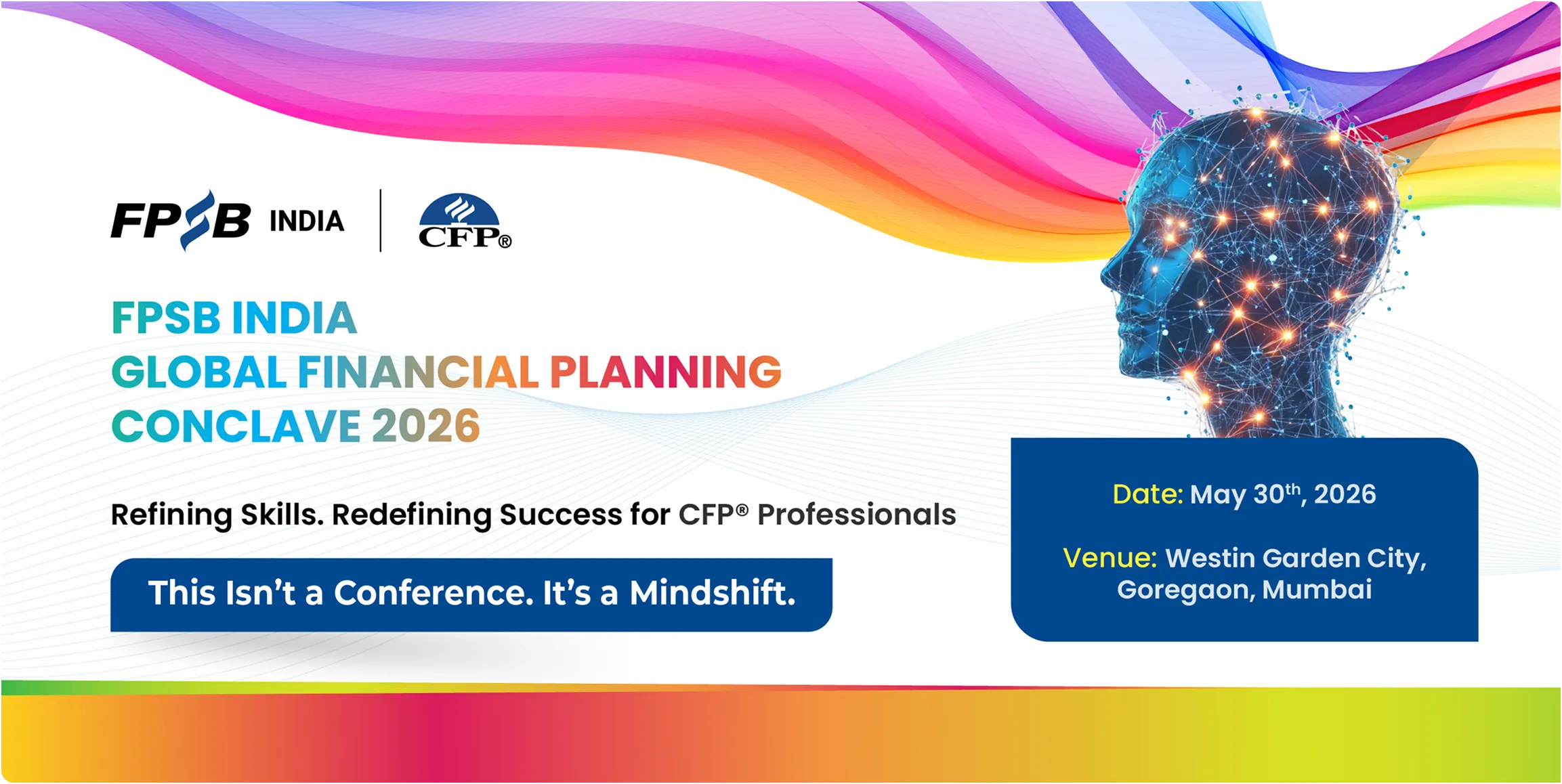 Join us on May 30, 2026 (Saturday) at The Westin Garden City, Goregaon, Mumbai, for a dynamic forum for learning, exchange, and professional growth. It is an opportunity to engage with global perspectives, challenge conventional thinking, and elevate your expertise in an increasingly interconnected financial landscape.  In a world where client expectations are rapidly evolving, and financial planning is becoming more sophisticated, success demands more than technical knowledge-it requires global awareness, adaptability, and continuous skill enhancement. The FPSB India Global Financial Planning Conclave is where you gain insights from the world, refine your capabilities, and position yourself at the forefront of the profession-ready to deliver meaningful, future-ready impact.